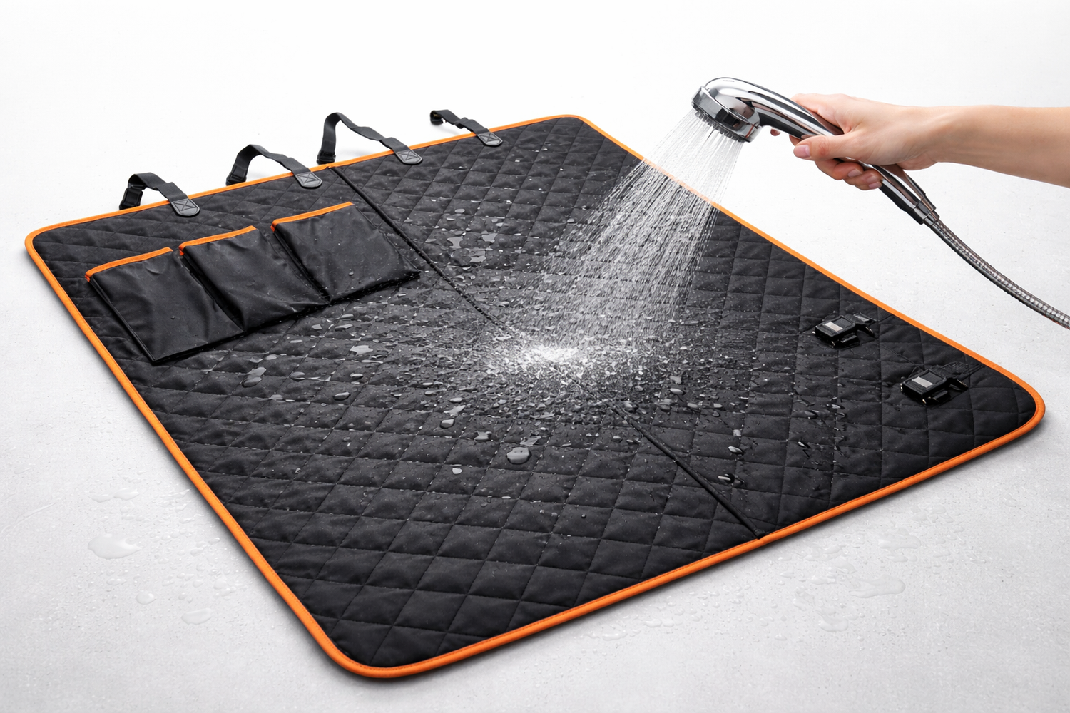 Sièges, côtés, fond — tout est couvert. Même après la balade la plus boueuse.
